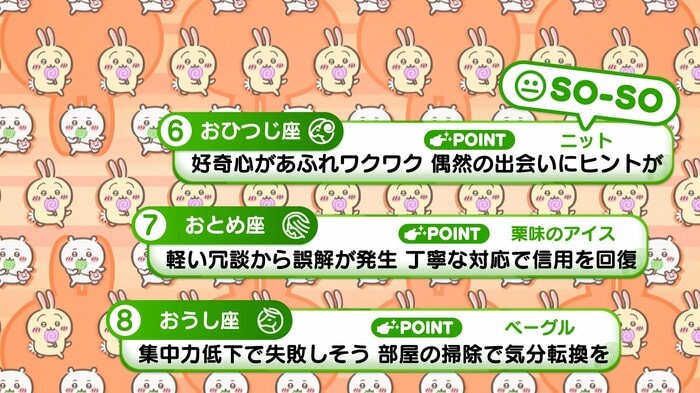 『めざましテレビ』で放送中の「ちいかわ占い」 テレビ放送がない日はお休みで、月~土:朝7時以降に更新予定です。