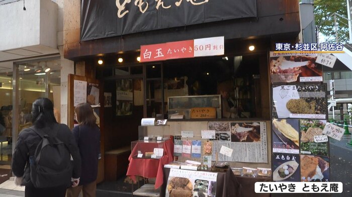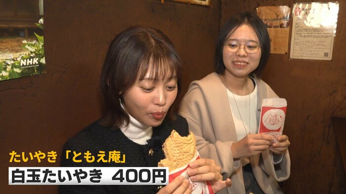 1日に最高1600個売れたこともあるという、人気たいやきのお店「たいやき ともえ庵」。早速、看板メニューの「白玉たいやき(1個400円)」をいただくことに。