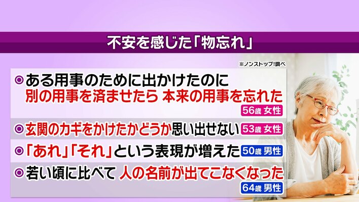「物忘れ外来」を受診したことがあるという三木さんは、「部下に『あの件』と言われたのに『あの件』が思い出せず、心配になって受診した。MRIやテストを受けて、結果が出るまではドキドキだった」と感想を語りました。