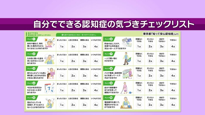 スタジオの出演者は、東京都の「とうきょう認知症ナビ」が公開している「自分でできる認知症の気づきチェックリスト」にも挑戦しました。