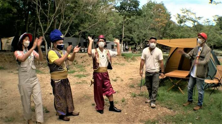待っていた、アウトドア系芸人2人、西村瑞樹(バイきんぐ)さん、たけだバーベキューさん扮する「キャンプ魔人」とともにタープ(※)を張り始めるのですが…まさかの大混乱!?果たして、無事にバーベキュー大会は開かれるのでしょうか。