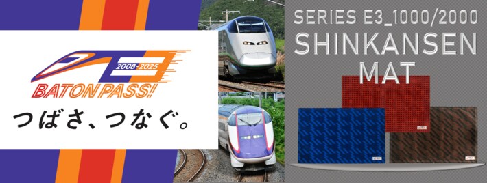 JR東日本東北総合サービス株式会社(本社:宮城県仙台市、代表取締役:弭間 俊則)と東日本旅客鉄道株式会社東北本部(以下「JR東日本東北本部」) は、室内装飾の老舗・睦屋と連携し、2025年5月からJR東日本東北本部にてスタートした山形新幹線E3系「つばさ」から新型車両E8系「つばさ」へのバトンパスプロジェクト「つばさ、つなぐ。」におけるオリジナル商品として、E3系1000番代/2000番代の車両座席シートを使用した3種類のマットを発売します。車両運行終了に伴い不使用となる補修用座席シートに新たな価値を見出した特別なマットです。ぜひ、暮らしのなかでE3系の魅力をお楽しみください。