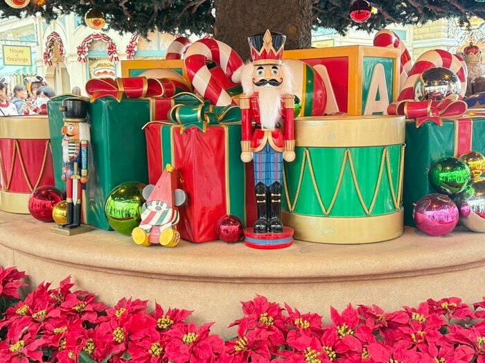 カラフルなオーナメントが飾られたツリーや木彫り人形が並んでいて、シンデレラ城と一緒に撮影すれば、この時期だけの特別感あふれる1枚に。