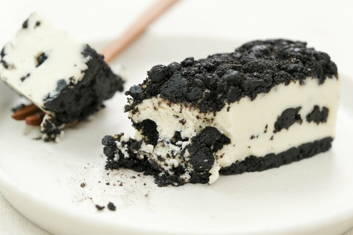レアチーズケーキのなめらかなコクと、ブラックココアクッキーの香ばしいザクザク食感を組み合わせた、贅沢なチーズスイーツです。