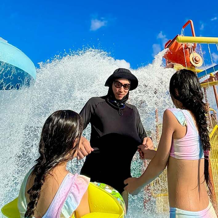 過去には、家族とともに沖縄に訪れた様子を披露し、写真には、おそろいの水着を着た娘2人と向かい合う、日焼け対策万全な田村さんの姿を見ることができました。