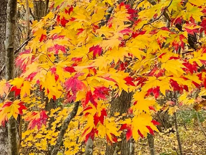 秋といえば紅葉です。とくに10月は、場所によっては、山沿いでとても美しい紅葉が見られます。