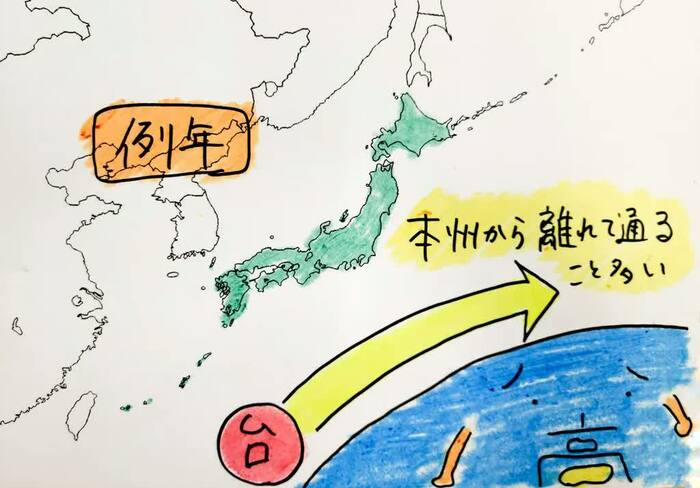 9月のコラムにも書きましたが、今年は夏の高気圧の勢力が強く、台風が日本に近づきやすい状況です。そのため10月も、北上してくる台風に注意が必要です。