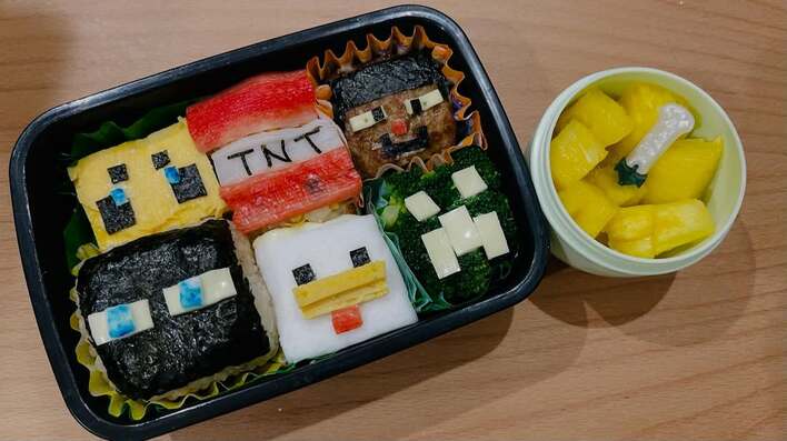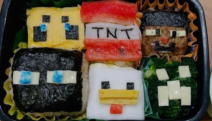 なんと、史上最も売れたゲームの一つとして知られる「マインクラフト」のキャラクター弁当を作ったようです。