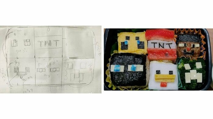 手書きの図面も準備して作り上げた、手作りの“マインクラフト弁当”を公開しました。