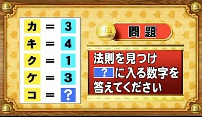 並べられた言葉の法則を見つけて「?」に入る数字を答えてください。