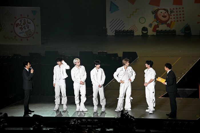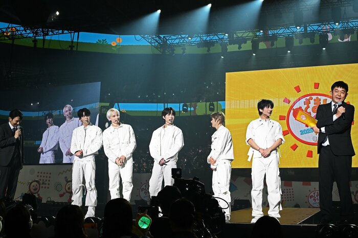 ライブ後、再びステージに戻ってきた5人は、フジテレビ『めざましテレビ』キャスターの伊藤利尋アナウンサーと生田竜聖アナウンサーを交えてトーク。