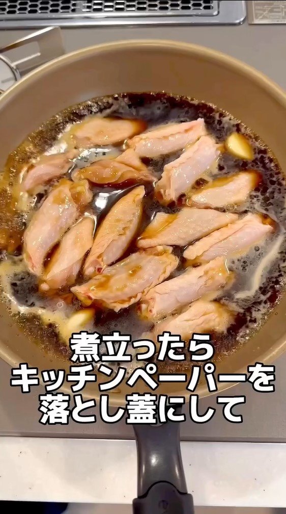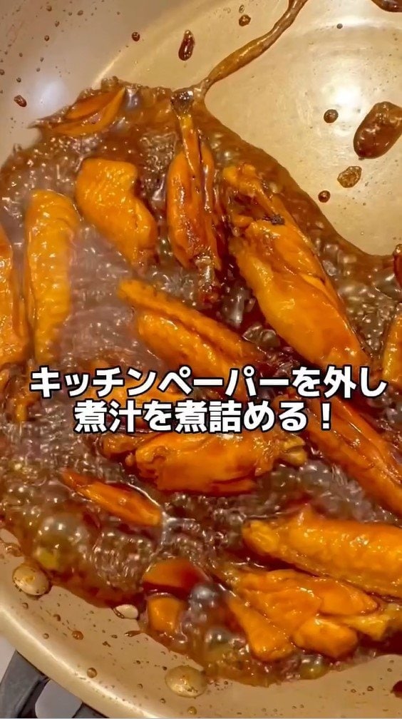 時間がたち、落としぶたを外すと、調味料が絡んで味がしみこんでいそうな手羽中が姿を現しました!