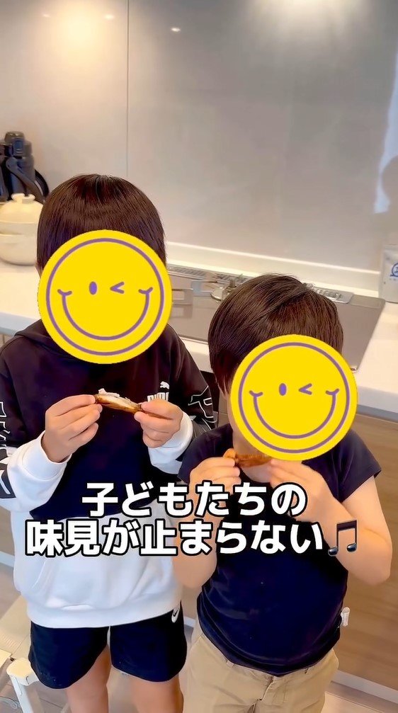 最後には、「子どもたちの味見がいつも止まりません」と、夢中で手羽中にかじりつく息子たちの様子も公開しています。