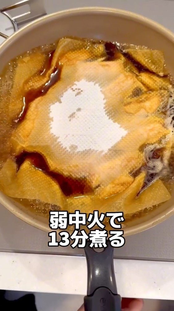 この状態で、火加減を弱中火にして約13分間煮ます。