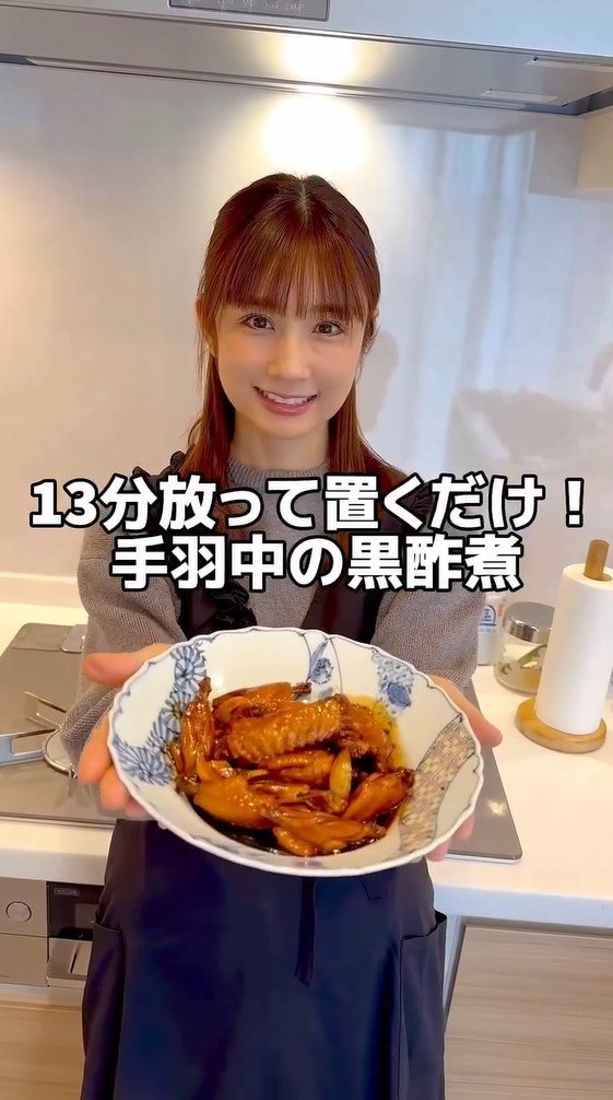 そして今回、小倉さんは、13分放っておくだけでできる「小倉家のリピート率No1」な「手羽中の黒酢煮(3~4人分)」の作り方を動画で紹介!
