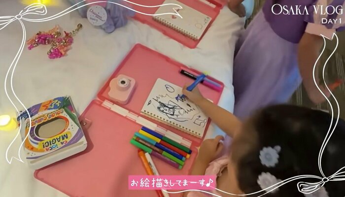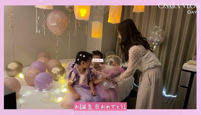 今回、板野さんは「ベビちん4歳の誕生日を大阪でお祝いしたよ♡」と題して、動画を更新。