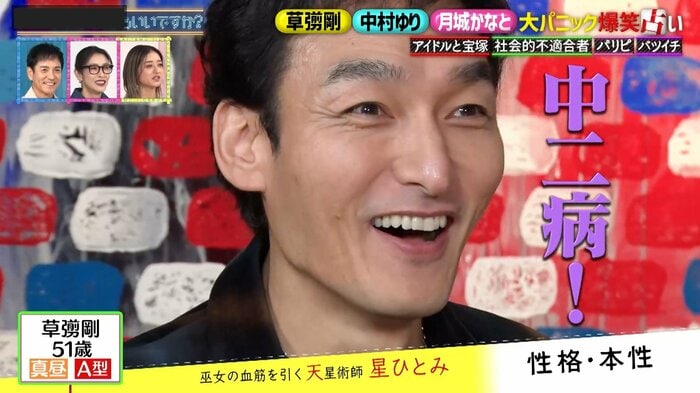 11月9日放送の『突然ですが占ってもいいですか?』は、草彅剛さん、中村ゆりさん、月城かなとさんが、星ひとみさんに占われました。