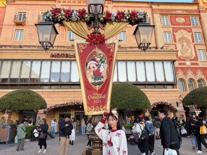 東京ディズニーシーでも、パーク内がクリスマス一緒に染まっています!