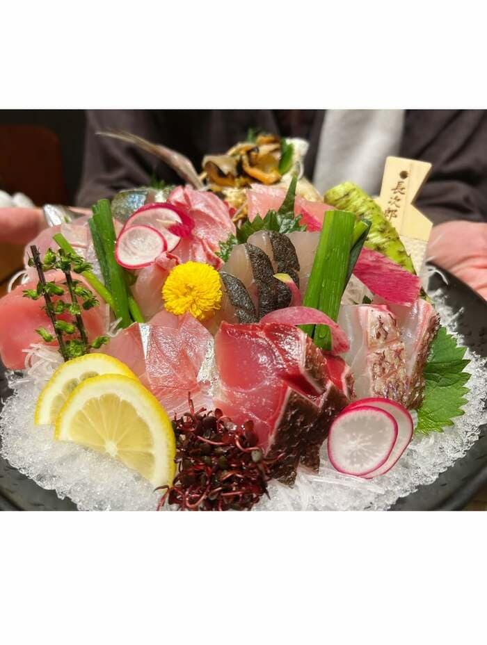 黒いお皿に盛られた豪華な刺し盛りや・・・