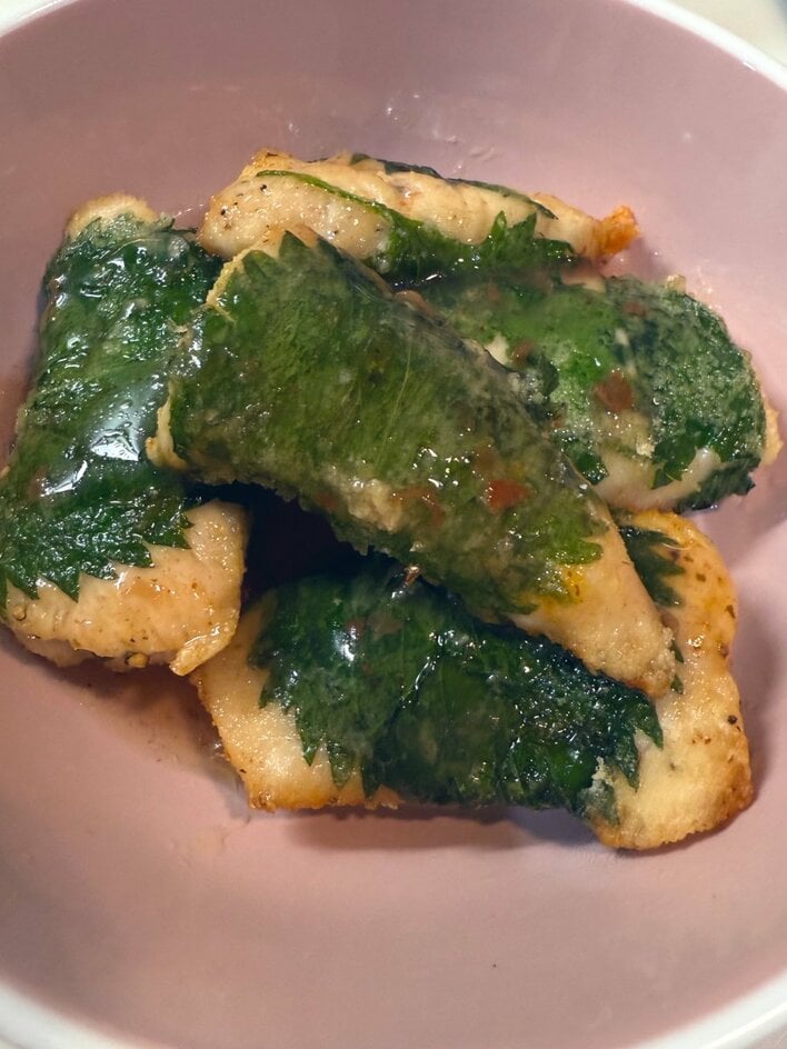 まずは、「大葉と鶏肉と梅ソース」と題した鶏肉料理。