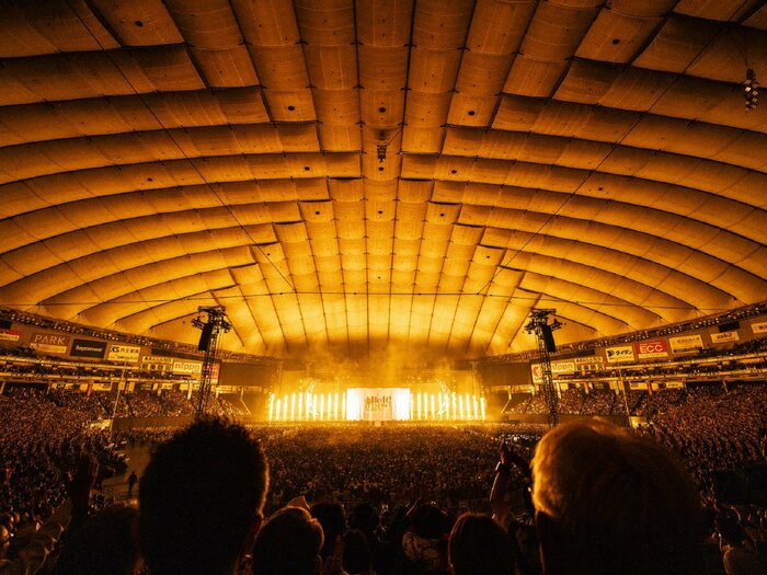 2度目のMCでは「Thank You、ドーム、いいね!(日本)武道館をバーッと大きくした感じ。ツアーの開幕が近づいてきて、正直『俺、やれんのかな?』ってちょっとビビっていましたけど、あっという間に初日がきて、もうやるしかないじゃん!幸せです」とニヤリ。
