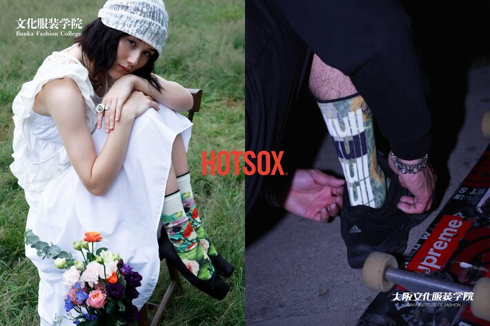レンフロ・ジャパン株式会社が展開する、NY発のアートソックスブランド『HOTSOX(ホットソックス)』は、2022年より文化服装学院との産学連携プログラムを3度にわたり実施してきました。学生が複数のチームに分かれ、靴下デザイン、広告販売戦略の立案、キービジュアル撮影、SNS運用、店頭販売応援などを独自におこない販売数を競う、産学連携型のプロモーションバトルとなっています。