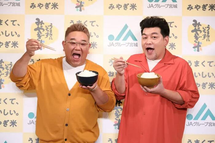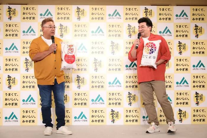 サンドウィッチマン(伊達みきおさん、富澤たけしさん)が、9月28日に行われた、「令和4年産宮城米説明会および新CM発表会」に出席しました。