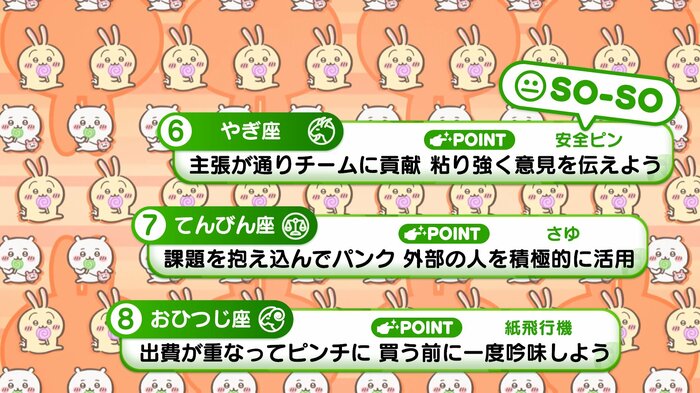 『めざましテレビ』で放送中の「ちいかわ占い」 テレビ放送がない日はお休みで、月~土:朝7時以降に更新予定です。