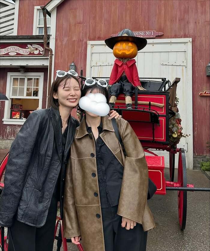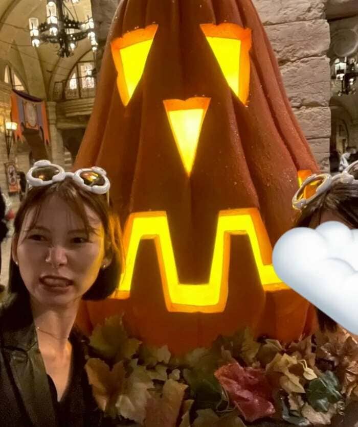 さらに、ハロウィンの大きなお化けカボチャの前での2ショットでは、カボチャの表情をマネる朝日さん。東京ディズニーシーを2人で満喫する様子が伝わってきます。