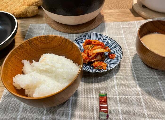 そして、お茶碗にご飯をよそい、キムチを添えた食卓を公開した市川さん。