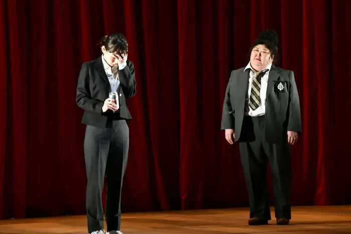さらに、「これだけの芝居によくめげないなって思いました。受けて立つだけですごい」(根岸)、「受け入れてくれる範囲が広いので、頼りになる」(田畑)、「日に日に熟していって、いいキャラクターを形成していってる。我々は100人分頑張って演じようと思っていますが、森田さんは1000人分演じています。それぐらい大変だと思う」(鶴見)と、共演者から次々とほめ言葉が。