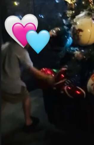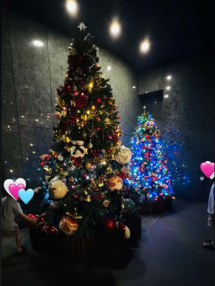 自宅の巨大クリスマスツリーを披露し、そこで遊ぶ子どもたちの姿を公開しました。