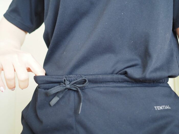 生地と同様、ゴムのダメージも気になりません。ゴムはきつすぎずゆる過ぎず、ウエストは締め付けがなくほどよくゆったりとしており、ストレスなく着用できています。とはいえ、もしゆるくなったとしても調節できるので、大きな問題はなさそうです。