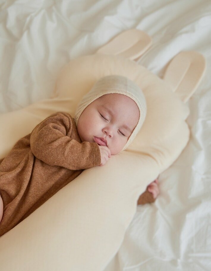 頭の形を守るための新しい定番が、「ユニースリープ」という新しいタイプの赤ちゃん用枕です。この枕は、赤ちゃんの睡眠時の向きを自然に変え、左右バランスよく寝かせるために設計されています。特に特徴的なのが、内部の縫製ラインによる構造です。これにより、赤ちゃんは片側に偏ることなく、左側と右側に交互に快適に寝る習慣を身につけられます。