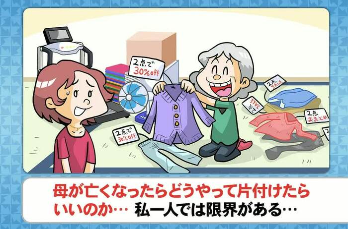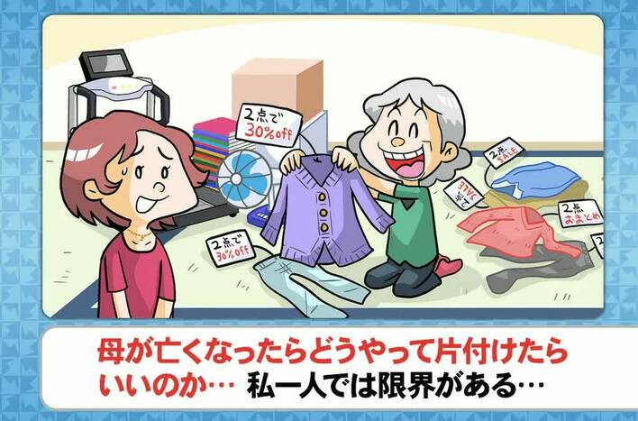 まず紹介されたのは、「80代後半の母が、物をなんでも取っておくタイプ。亡くなったらどうやって片付けたらいいのか不安」という女性のお悩みです。