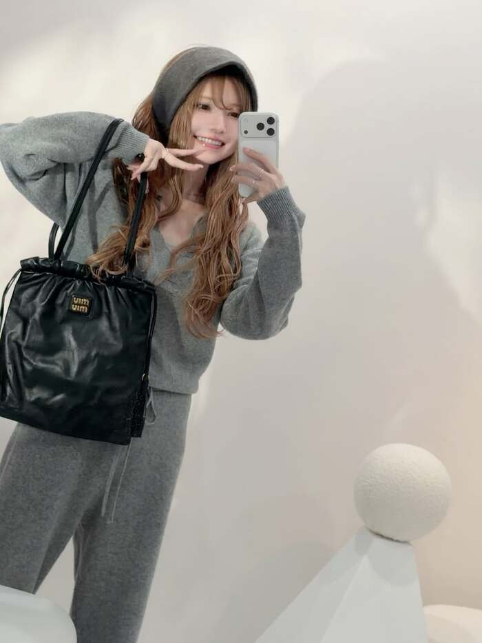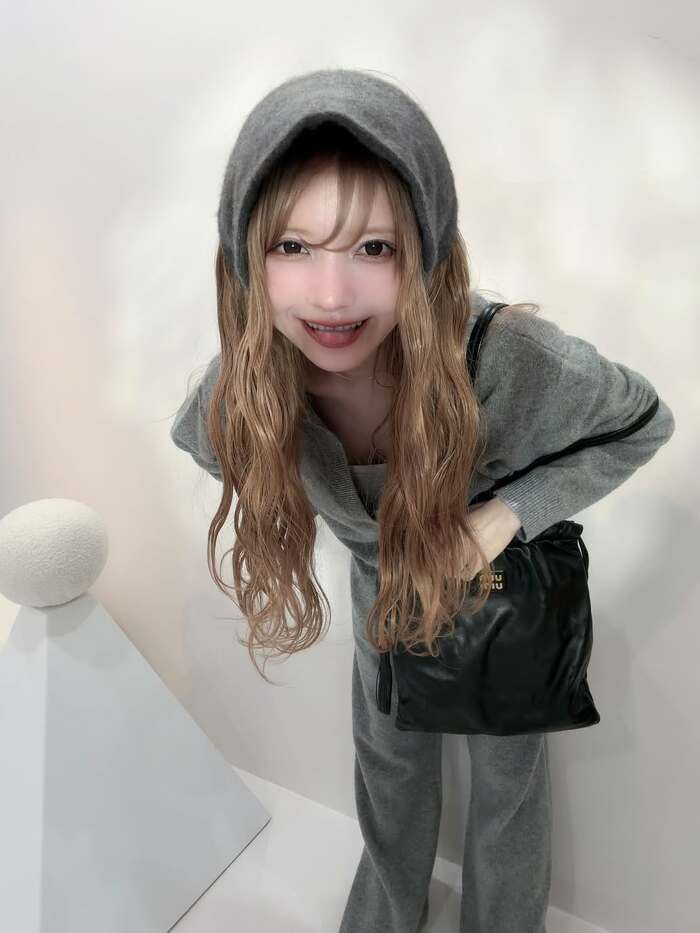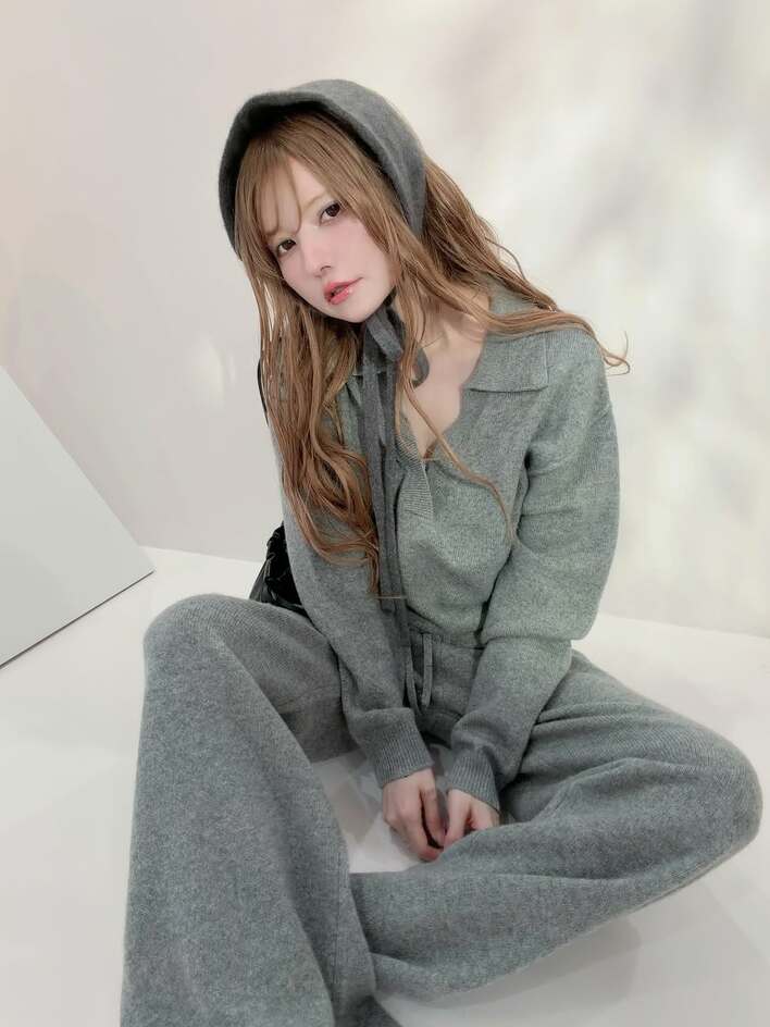 益若つばさ ゆるっとセットアップを着こなし舌出し♪