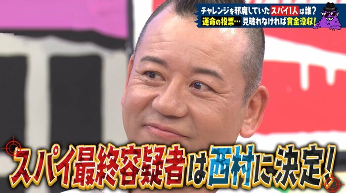 全チャレンジで、怪しい動きを指摘された西村さん。また、菅田さんも「西遊記のあれ(岩に閉じ込められたシーン)、表現します?」(華丸)、「最後のゲーム、(成功しそうなのに)ちょっとだけポンって当ててた」(大悟)といわれて、スパイ容疑者に急浮上。