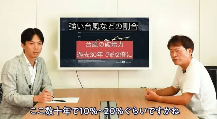 「海も温暖化しているので、暖かい海からいっぱいエネルギーをもらって台風が強くなる。それから、日本周辺の海の温度上昇が大きくて、日本に近づいてきた時に弱まらないんですよね」