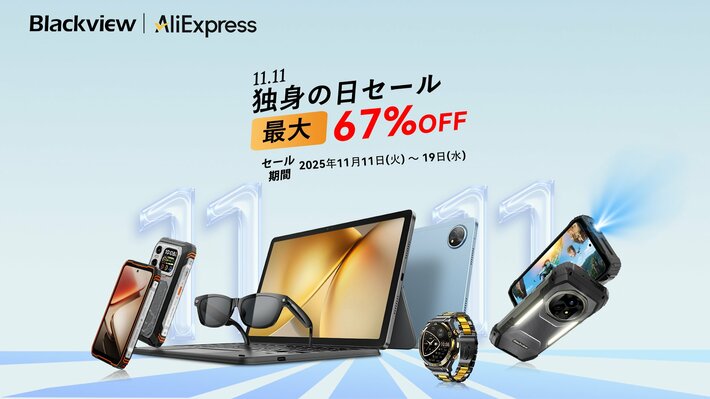 2025年11月11日(火) ~ 19日(水)に開催されるAliExpress「独身の日セール」において、Blackview(ブラックビュー)の人気製品の数々を非常にお得な割引価格で購入できます。