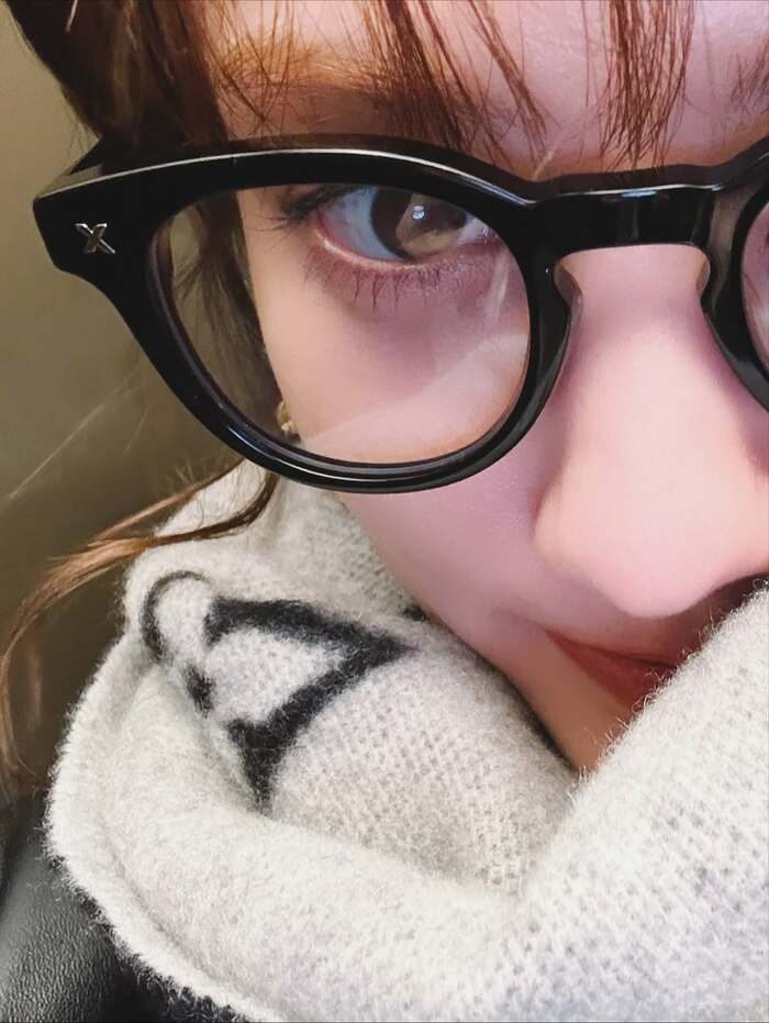 太めの黒縁メガネをかけたインテリ風ショットも披露!