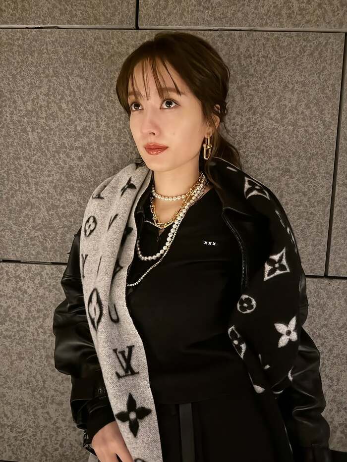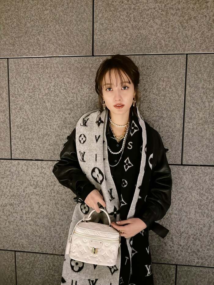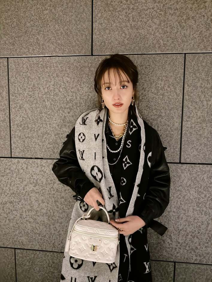 マフラーやバッグなどのアイテムは全てルイ・ヴィトンのもののようで、上品な雰囲気が漂っています。