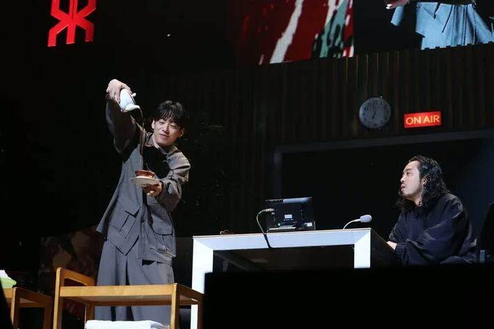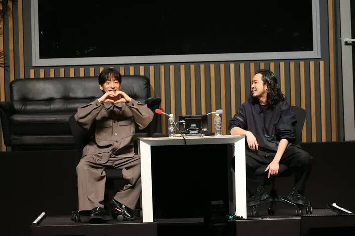ステージには、ラジオブースをモチーフにしたセットが用意され、Creepy Nuts(R-指定さん、DJ松永さん)が登場。