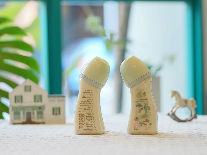 毎年、デザイナーと共に心を込めて作り上げる干支ボトルは、生まれてくる赤ちゃんとご家族に喜んでいただけるよう、赤ちゃんへの願いと思いを込めて大切にお届けしています。