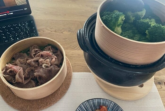 市川さんは、「スチームブロッコリーと肉 頂きます!」と蒸し料理であることを伝えました。
