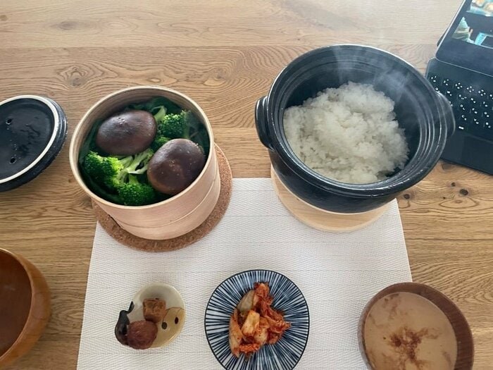 さらに、お味噌汁、キムチ、梅干しもズラリ。彩り豊で健康的な“あさめし”になっています。