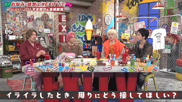 EXITがゲストとリラックスしたトークを繰り広げる『EXITV』(フジテレビ)。11月11日の放送では、木全翔也さんと金城碧海さんを迎えて「イライラした時にどう接してほしいか」トークで盛り上がりました。