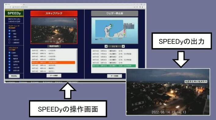 また、スキップバック映像には、自動で地点スーパーがつけられ、震度情報も同じ操作端末で切り替えられるようになり、送出の負担も減りました。