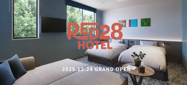 カトープレジャーグループ(東京本社/東京都港区・代表取締役社長 兼 グループCEO/加藤宏明)は、赤沢温泉郷敷地内に併設する、アートホテル「RED 28」(静岡県伊東市)に関しまして、本日2025年11月11日(火)の15時より、 2025年12月24日(水)宿泊分からの予約受付開始をお知らせいたします。