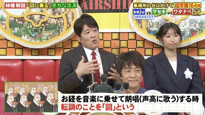 慣用句の「図に乗る」の語源についても、林先生は解説。「図に乗る」は「調子に乗ってつけあがる」という意味ですが、「図」とはお教を音楽に乗せて朗唱する際に、転調することを指す仏教用語でした。