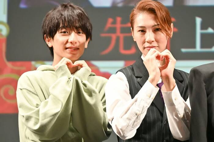 増子さんは「萩という役を演じて、僕自身、内面が明るくなった。人生を楽しくしてくれる作品だと思います」、如月さんは「琥珀(如月)と萩(増子)のカップルには、いろいろなキュンポイントが出てくると思うので、楽しみにしていてください」と、あいさつ。